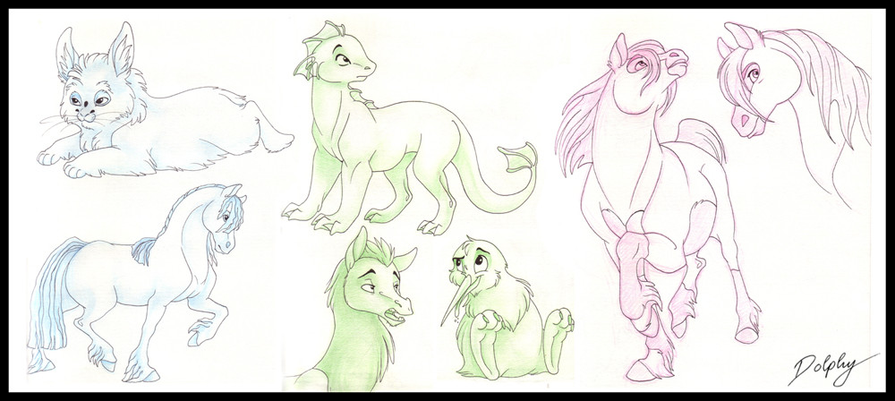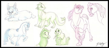 I adore how you drew Rain and Spirit! ^_^ Horses can be such a pain to draw but you made them look very good. I think the colors still looks great, very soft looking too! The sketches in the background were a good idea.