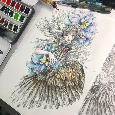 #portrait #watercolour #traditionalart #pencildrawing #fanart #fantasyart #fantasycharacter #sketching #animedrawing #feathers #howlsmovingcastle #studioghibli