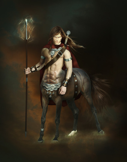In Greek mythology, centaurs were creatures that were half man and half horse. They had the head, neck, chest, and arms of a man and the body and legs of a horse. Most centaurs were brutal, violent creatures known for their drunkenness and lawless behavior. They lived mainly around Mount Pelion in Thessaly, a region of northeastern Greece.Stock used -