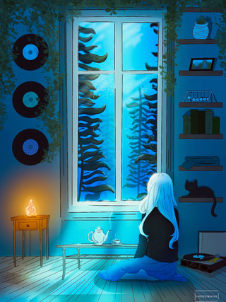 #aesthetic #clouds #coffee #cozy #illustration #originalillustration #plants #sky