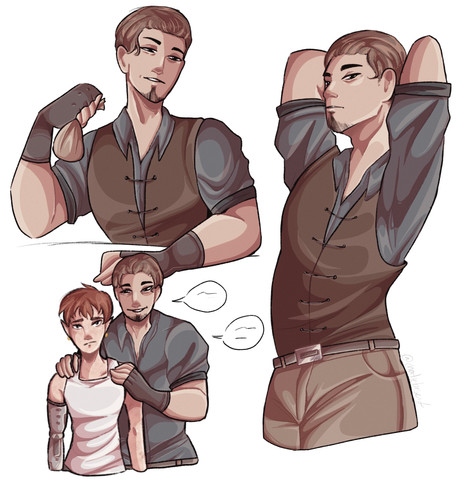 Anatomy study of the upper male body and also character study, as well as trying out a new style. Finally got this one down, took quite a while to figure out.--------------------