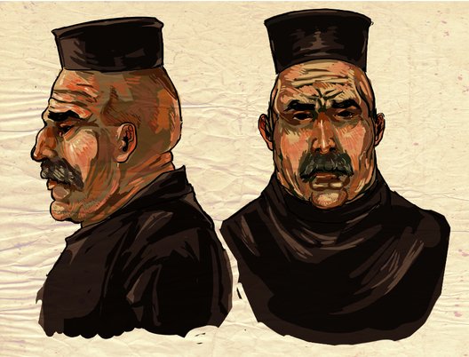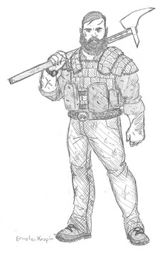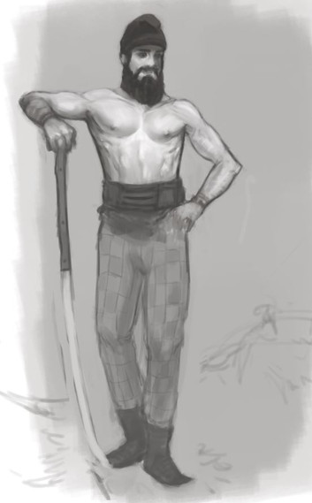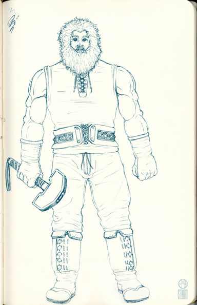 I wanted to make him in direct contrast to the fourth character when it comes to body shape. I must say though, I like this one better. The drawing just worked and I'm pleased with it.