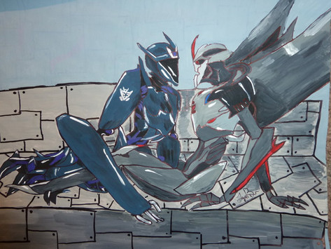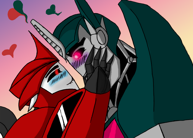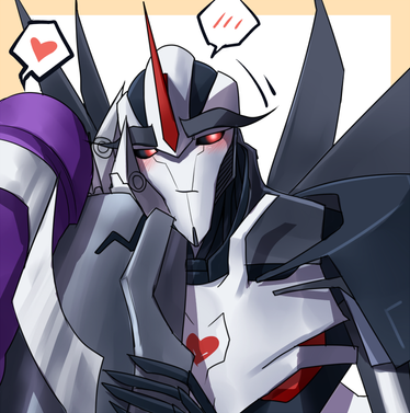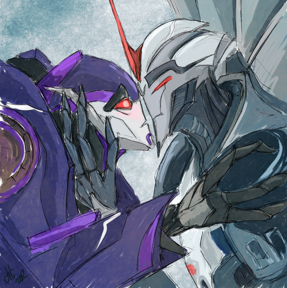 Awww Starscream looks soooooo cute in here and i love the blush on his cheeks. But who could blame him? Arcee is a handsome looking femme hehehe Very well done. Love this two together. Would be awesome if something like that would happen in the show, but sadly i don't think so *sighs* But we can still dreaming about that haha XD