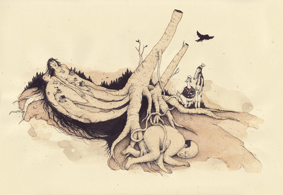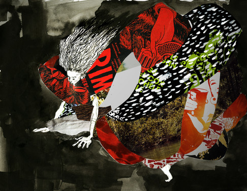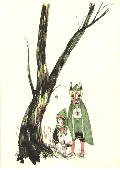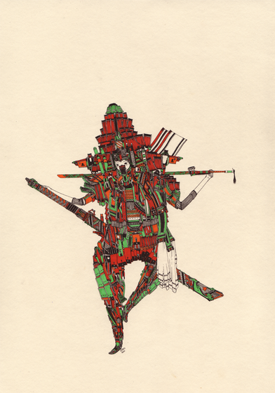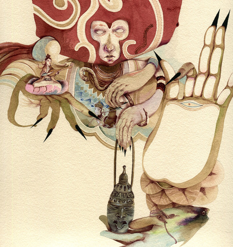 Wow, I thought it was photoshop -you can do this with copics! gorgeous. and I love how the visual themes from Mononoke work so well as autonomous art, as well.
