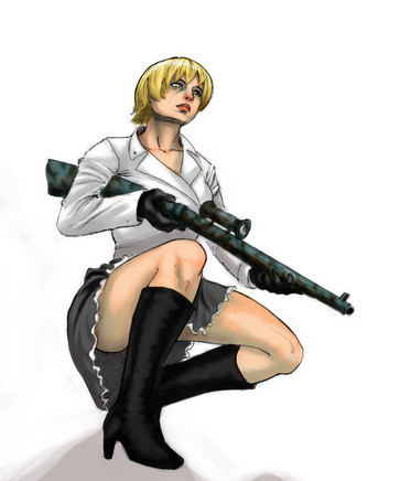 This is a really nice drawing! I love the details to Riza's.......everything XD. Her hair, her eyes, her uniform, her rifle, EVERYTHING.
