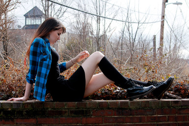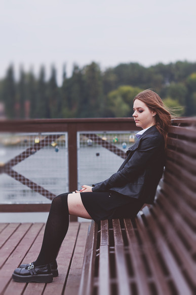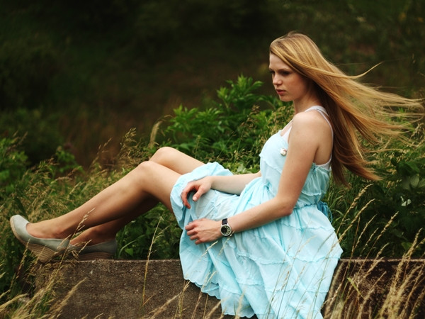 Seems that she's waiting for someone. Maybe to take him away with the train ( railway in the background? )