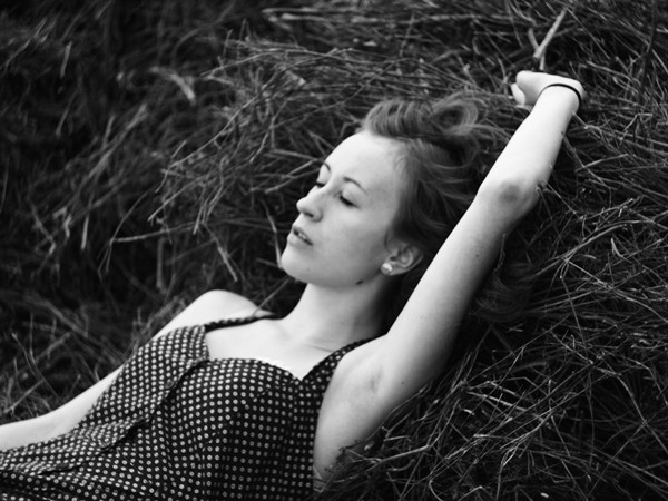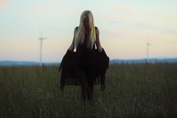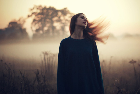 i love this image! The dark, background in a fog, and the wind tearing at your hair. beautiful portrait of sadness.