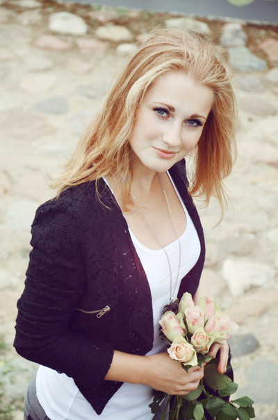 Interesting thing with your eye color is that it mirrors the colors in your dress and in the leaves behind you. Β Don't know if that was intentional or not, but it's a nice touch... Β