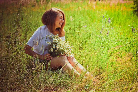 I like the framing and balance in this shot. You definitely know how to take advantage of the brilliant yellows and greens to offset the color of your hair!