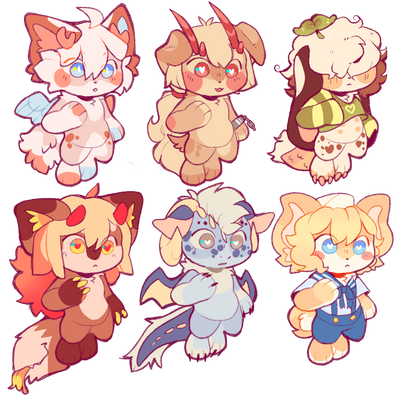 for tokominto prxttyodd p-aw Clawstarzthe long awaited chibis have finally come , im never going to accept a large amount of commissions again. these chibis were made on the cintiq !! it made it so much easier to line art. im sorry for the long wait again!! Also, p-aw i made you an extra chibi since i promised you i'd make you sculpture , but when i was making something personal for myself, the sculpture cracked easily . i was very very disappointed bc the clay i was given to was very delicate .