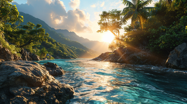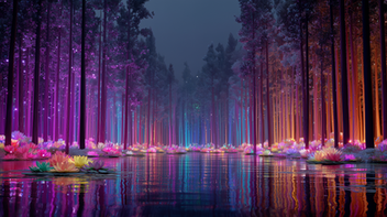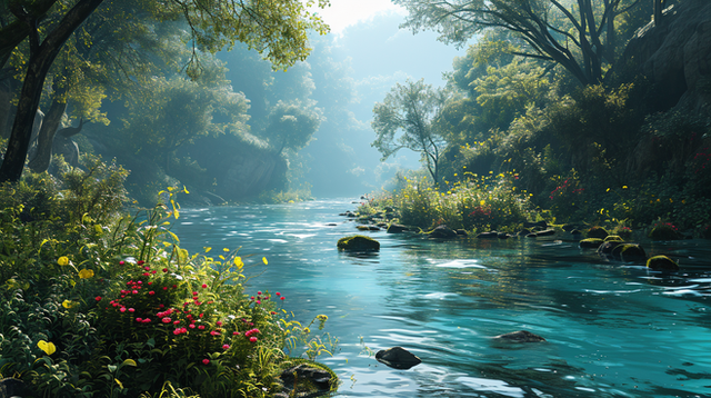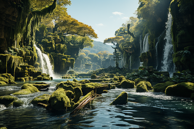 The entire scene exudes a sense of peace and untouched natural beauty, inviting observers to pause and soak in the tranquility of this forest haven.
