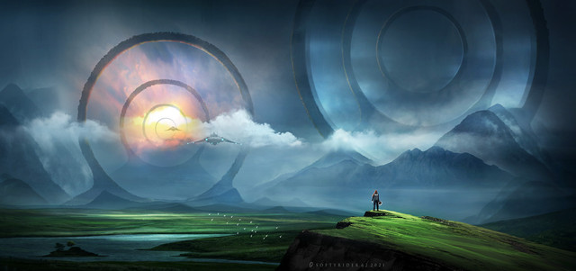 #alienlandscape #conceptart #digitalart #fantasyillustration #illustration #planet #scififantasy #spacescape #spacesuitgirl