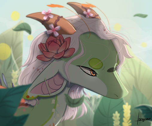 #animals #character #digital #dragon #greencolor #headshot #iconavatar #illustration #pastelcolors #portrait #scketch #commissionart #arttraditional #commissionsopen #artworkdigital #feralcharacter #art #scketchart #brownhair #flowers #redhair #whiteflowers #braidshair