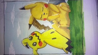 New drawing hanging on the wall of my room! I don't think this can really be considered art because I copied the Pikachu and the moon from some Google images. So this is not entirely created by me, it was just something quite quick I did for decorative purposes. The rest of the background was invented by me tho but it's an easy and quite common conceptRelated content