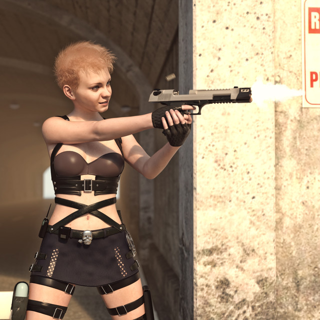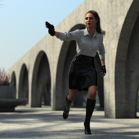 #render #digitalart #3d #gun #beauty #boots #firefight #henchgirl #latex #miniskirt