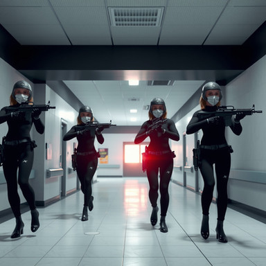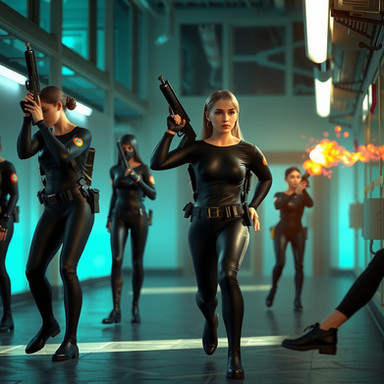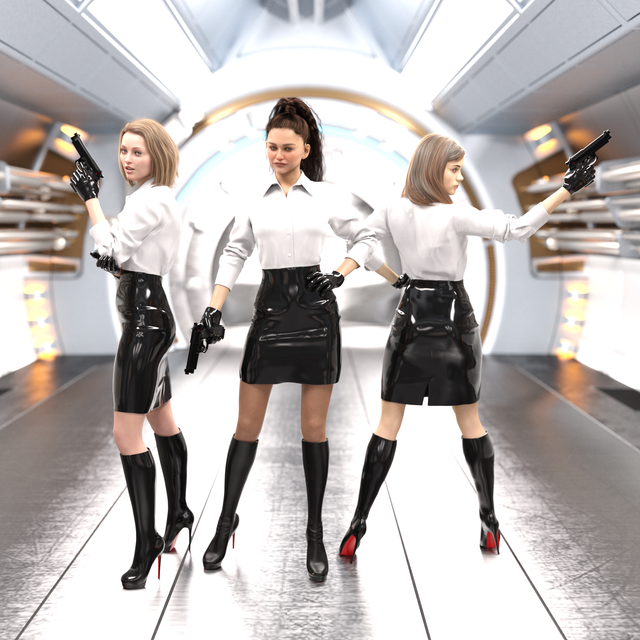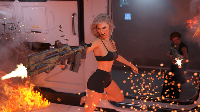 #gun #render #biotek #firefight #henchgirls #intruders #security #submachinegun #daz3dstudio