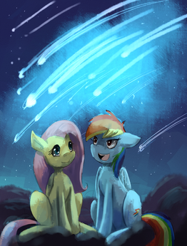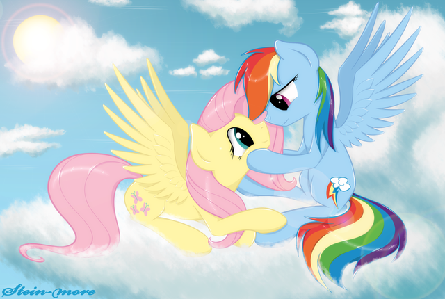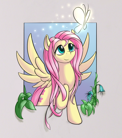 Aww, this is really adorable. This way of drawing ponies is wonderful especially it's great that theirs manes look so fluffy. Background looks awesome and Flutty's expression is fantastic : D.