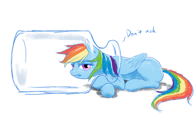 Besides, it never says Rainbow ISN'T a girl. Β Perhaps she's simply shocked when asked to measure her nonexistent dick. Maybe she doesn't know what it is, considering ponies don't have genitals in the first place.