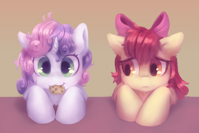 Yesterday I was asked to do a livestream. I asked for an idea, and someone suggested Sweetie Belle, eating spaghetti in the sunset. But she was so lonely that I decided to add Scootaloo thereThe records of the painting process can be found here [link] (skip the first 5 minutes) and here [link] (the reason I divided it into two parts is because SAI crashed in the middle).