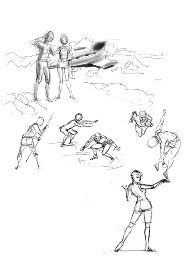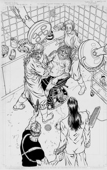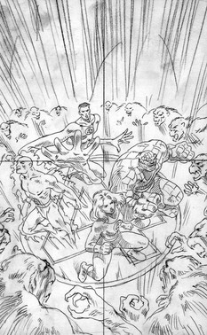I think I've invented a new step in the production process. I call it "rough ink", like rough pencils, only with ink. This is to get a rough idea of how the black and white design will work.Well, if you've checked the reference I gave in the last post you've probably come to the same conclusion I did that this is not an entirely original composition. It's a permutation on Ordway's original. That's why I went with black background, as in the original. Why fight it?