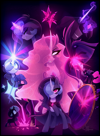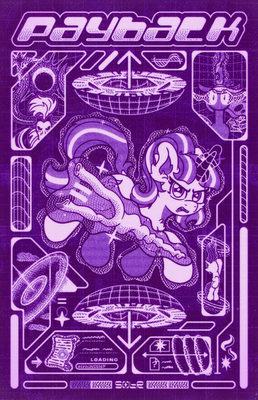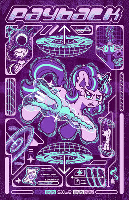 New(ish) graphic poster by yours truly featuring Sunny. She discovers an afterimage - a virtual projection of an alicorn corrupted by time. Can she escape unharmed? The alicorn is left ambiguous but there are some defining features. Hope y'all like it in its full res glory!Help support me by purchasing the art print or acrylic keychain, both made in-house by me: