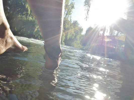 She wa putting her feet in the water and i just thought it would make a cool photo,