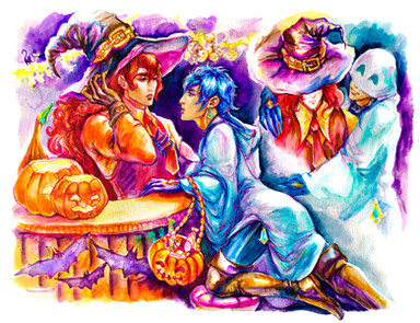 The traditional media is a peculiar mixture of powder paints, aquamarkers, ballpoint pens and white gel pen.