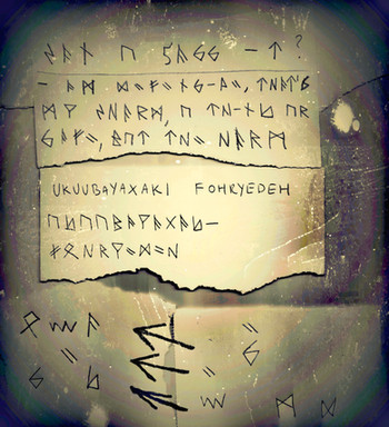 Have you ever been reading something and been like "I wonder what that would look like?" That's what happened here.I was reading a Harry Potter fanfiction that talked about Parselscipt and I couldn't get that question out of my mind until I got out of bed and wrote down what I thought it might look like. Thus this written language was created. It is read from top to bottom, left to right.
