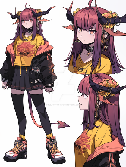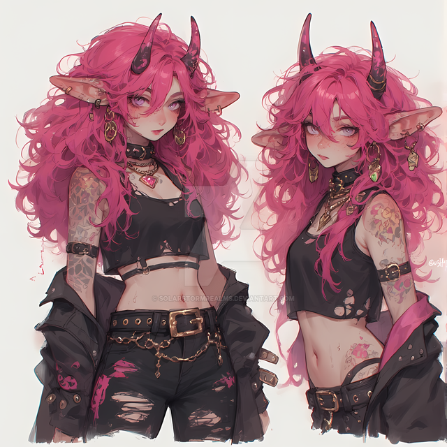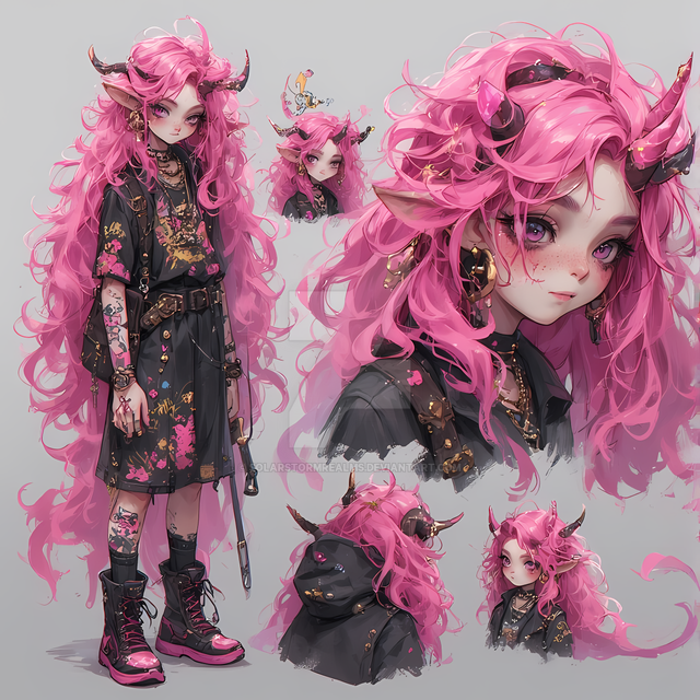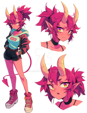 #digitalart #anime #characterdesign #adoptable #adopt #alt #character #cute #demon #fantasy #fashion #girl #hair #horned #oc #original #pink #punk #rebellious #sheet
