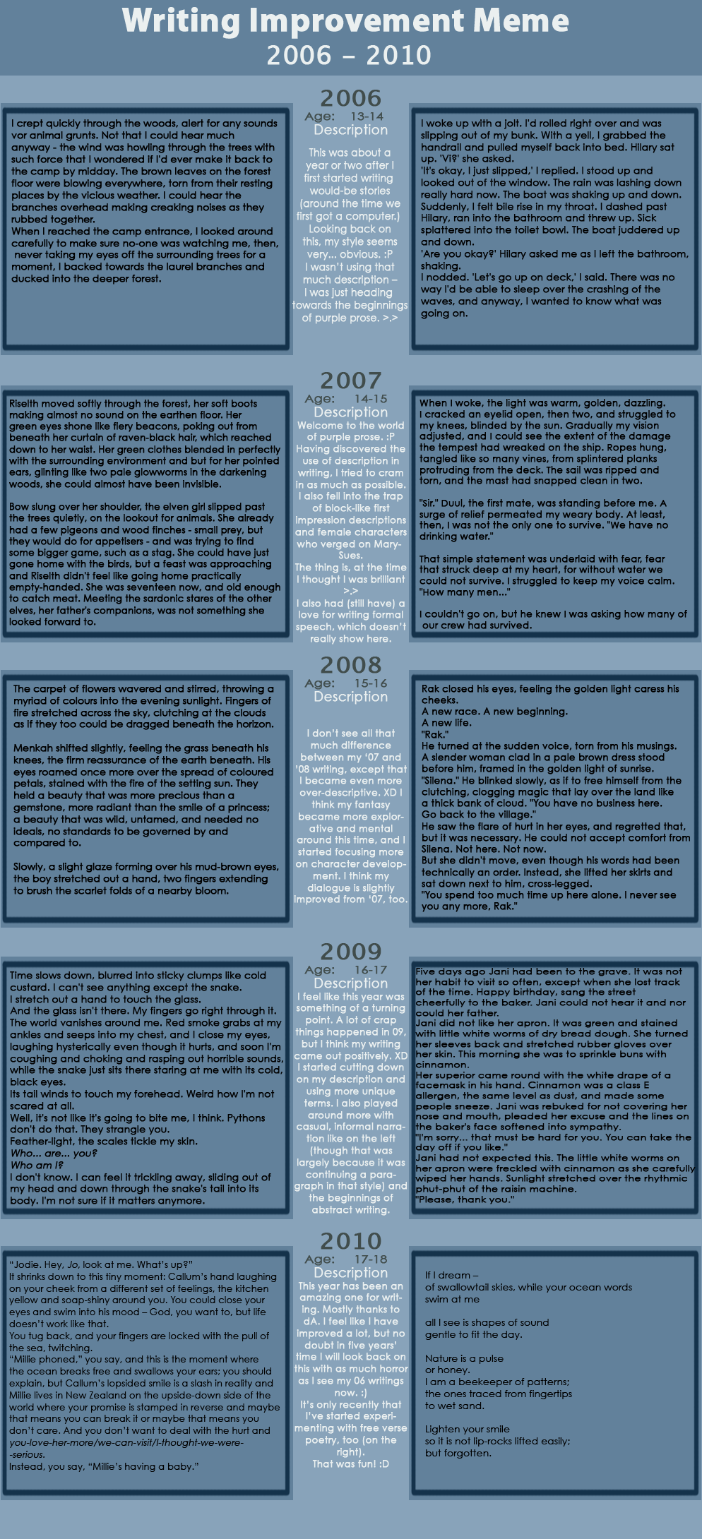 It feels weird to be critiquing this in 2013 when you submitted it so long ago. I just want to make more of an effort of showing my appreciation of people through critiques