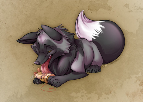 The Beginning - #1: Your Felvarg is learning new things every day and right now their practicing how to stalk. Depict your Felvarg as a pup, stalking and preparing to pounce on something for the first time. Perhaps it's a leaf, lizard, small animal, skull, rock, or even their parents/pack mates.