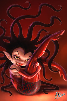 Instead of drawing Maricela in her usual black dress, I wanted to see what she looked like in red. I was a tad bit inspired by Lydia Deetz' red wedding dress and how that dress made her stand out a bit more. I wanted to do the same for Celi-Belly here. ^^ I also like the color scheme of ladybugs, Maricela's favorite insect!Related content