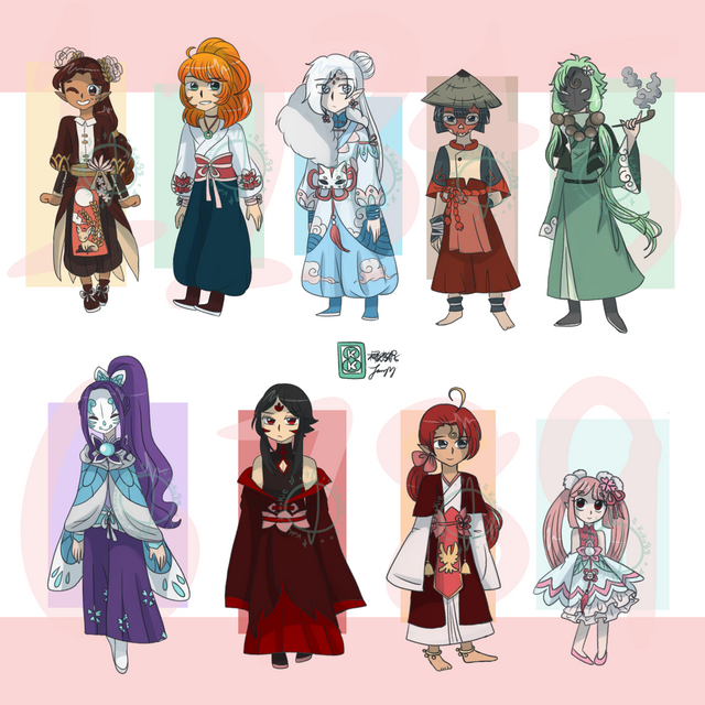 ForThank you Moonie-Loonie for collabing with me again~ She did the shading and sketching while I did the lining and outfit designs. This time, this batch is inspired by Mongolian, Tibetan, Chinese, and Korean culture! I am currently redoing the calendar format so it is neater~