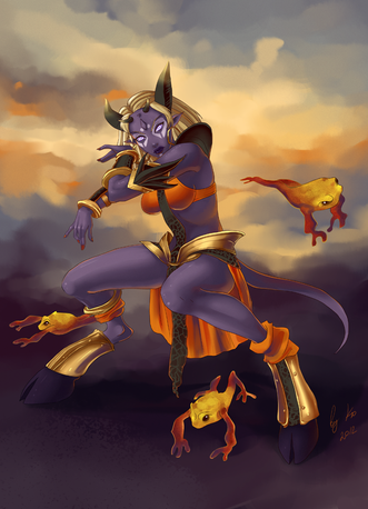 The other one was much more dramatic. This one is still pretty good, but the "jeans" sort of take me out of the fantasy. Guess Elira traded a scan of herself to a Chaotic Player to get them designer "jeans."