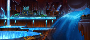 Here's the earlier plunge pool that wasn't used! It was deemed to look too similar to the angle of Cordac falls so the other version was used. I still like the feeling of this one and once again I think did a great job with the mood and color.Related content