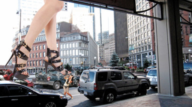 But layer shadows don't orient 3-dimensionally. I shadow with the paintbrush Also take a look at the shadows from the cars, the are all casting directly below. Meaning the light source of the pic is coming from above. So if I did cast a shadow on her feet, it would be in contrast to the realism of the overall picture.