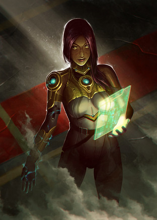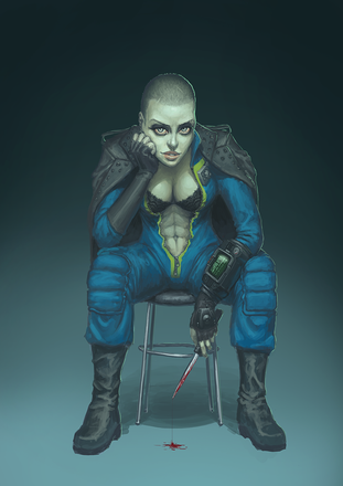 Cool ! Like the way she stand out of the background. Like the shading too, the pure black parts give a good perception of the depth. good job