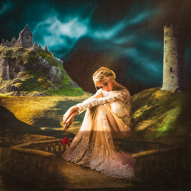 #fantasy #sky #trees #moon #rose #tiara