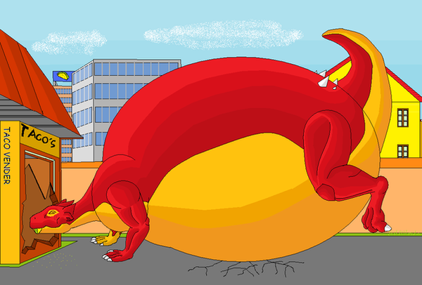 Nice work on the hands and feet, tis something I try to avoid in my artwork since I suck at them. The face does look rather content, although it does look slightly difficult to keep balance on such a stomach. A nice touch that is, to make his legs and arms sink into his stomach, gives the impression that he is super soft. Overall, nice job.