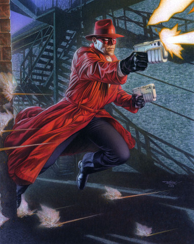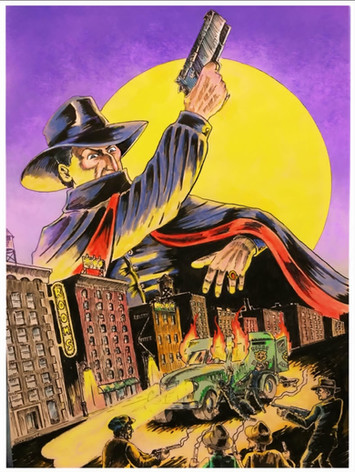 "The Shadow's iron grip and harsh pull threw off the crook's aim and brought him to the down to the pier. With a quick move of his arm The Shadow knocked him out with the butt of his automatic. Harry Vincent saw all of this in a blur. One moment he was in the aim of one of the Black Tiger's gunmen, next the would be assassin lay sprawled on the dock, the sibilant laughter of The Shadow was the only evidence to the agent that his leader had been there."THis is the banner art for my review of The Shadow, both his appearances on film and the unreleased video game. Originally planned to release with the 1994 film, the game was nearly completed before the film's poor reception caused Universal to pull the plug.