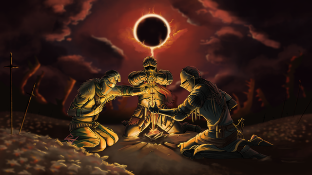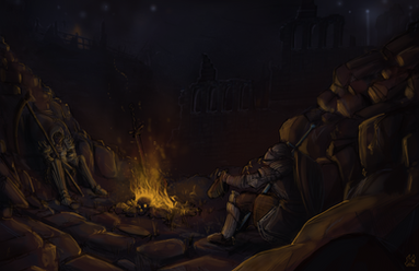 Oscar of Astora, Solaire of Astora, Lautrec and Siegmeyer of Catarina in front of a bonfireRelated content