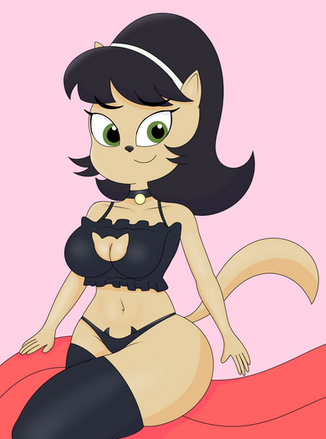 It has been a long time since the last time I drew Kitty Katswell, but that can be fixed! Here's Kitty wearing a very lovely kitty themed outfit lingerie!Took me more time than I've expected because I practiced less this last week, spend around 7 hours drawing and painting all.