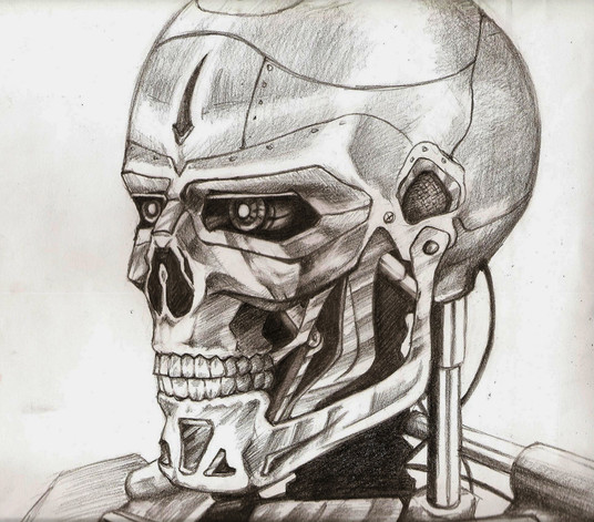 My final Terminator sketch. Black ballpoint pen.Related content