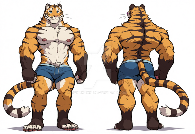 I LOVE how this guy is build like a tank. He's very solidly build and feels so three dimensional, it also doesn't help that I ADORE tigers. I love the design of his hands and feet. However, something I noticed is that, in his frontward view, his bicep is colored the pale cream of his belly fur, but on his profile view, his bicep is colored orange!