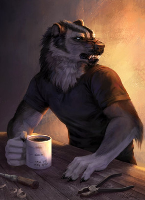 I know I posted a short comment earlier, but really, this is amazing. I love the effects of the lighting on the fur and the hair, and his expression really pulls it together.