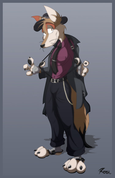 He looks like a realy cool detective Like "Blacksad" or something.