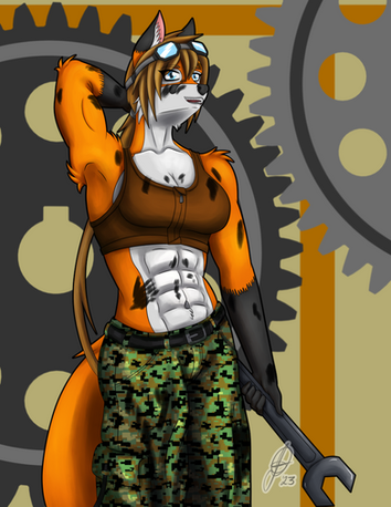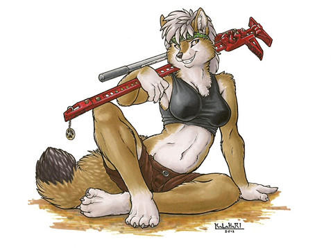 Her feet/toe ring are pretty cool, considering a lot of people make them more canid-like. And her left hand looks good too. Pretty soft shading on her pants, it fits perfectly.