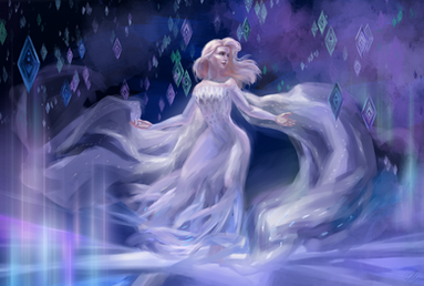 I accidently gave the queen of Arendelle a bit of a demonic twist... Nice.Also Elsas hands would not cooperate, so: More glowy stuff!