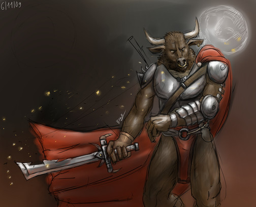 suddenly I can color in digital after using SAI. GET IT NAO. it's amazing.yeah it's a minotaur as you can find in the greek mythology. If you want to figure out more about this, go to wikipedia: [link] I always tried to draw one that looked like from the video game Vagrant Story but that thing is maybe two times taller than a human... lol So I just stuck with a "traditional" minotaur.