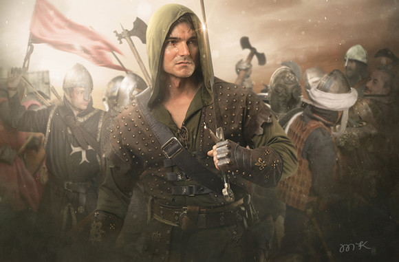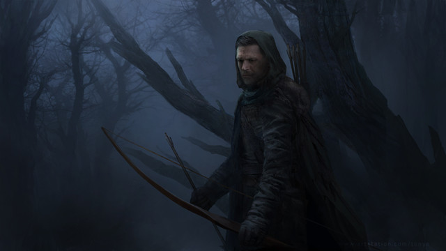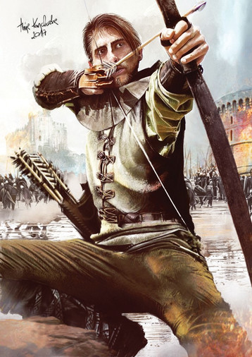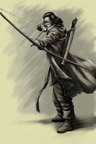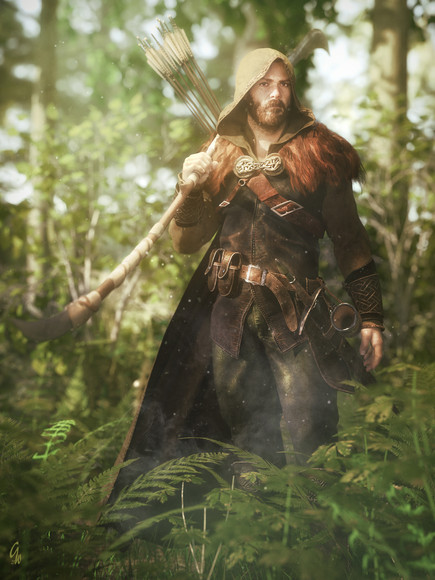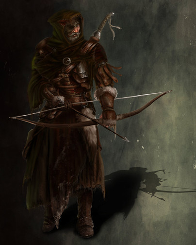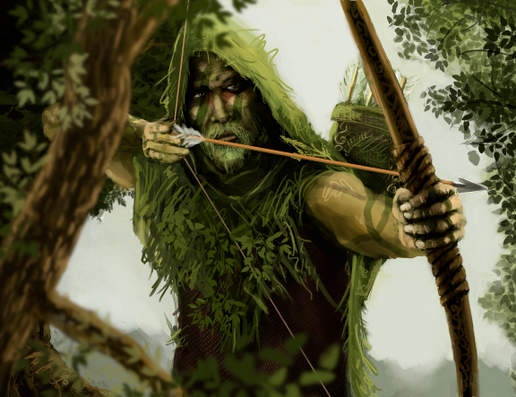 Maedoc, human ranger, with his great mighty longbow.Digitally painted over two photo references.